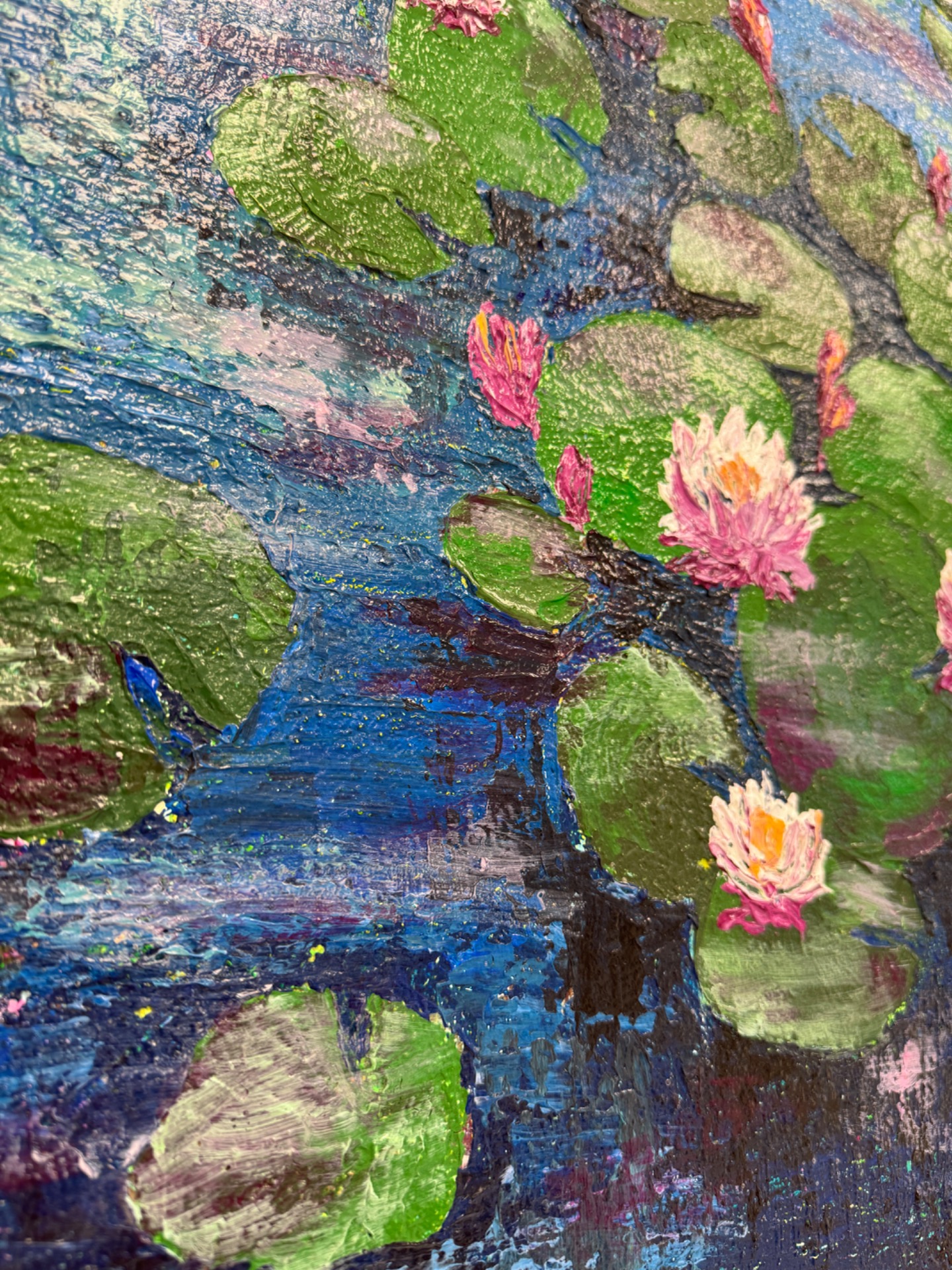 Obraz je maľovaný akrylovými farbami na štrukturovanom podklade na plátno, použila som rôzne médiá nanášané špachtľou, namaľované sú aj boky a je pripravený na zavesenie.