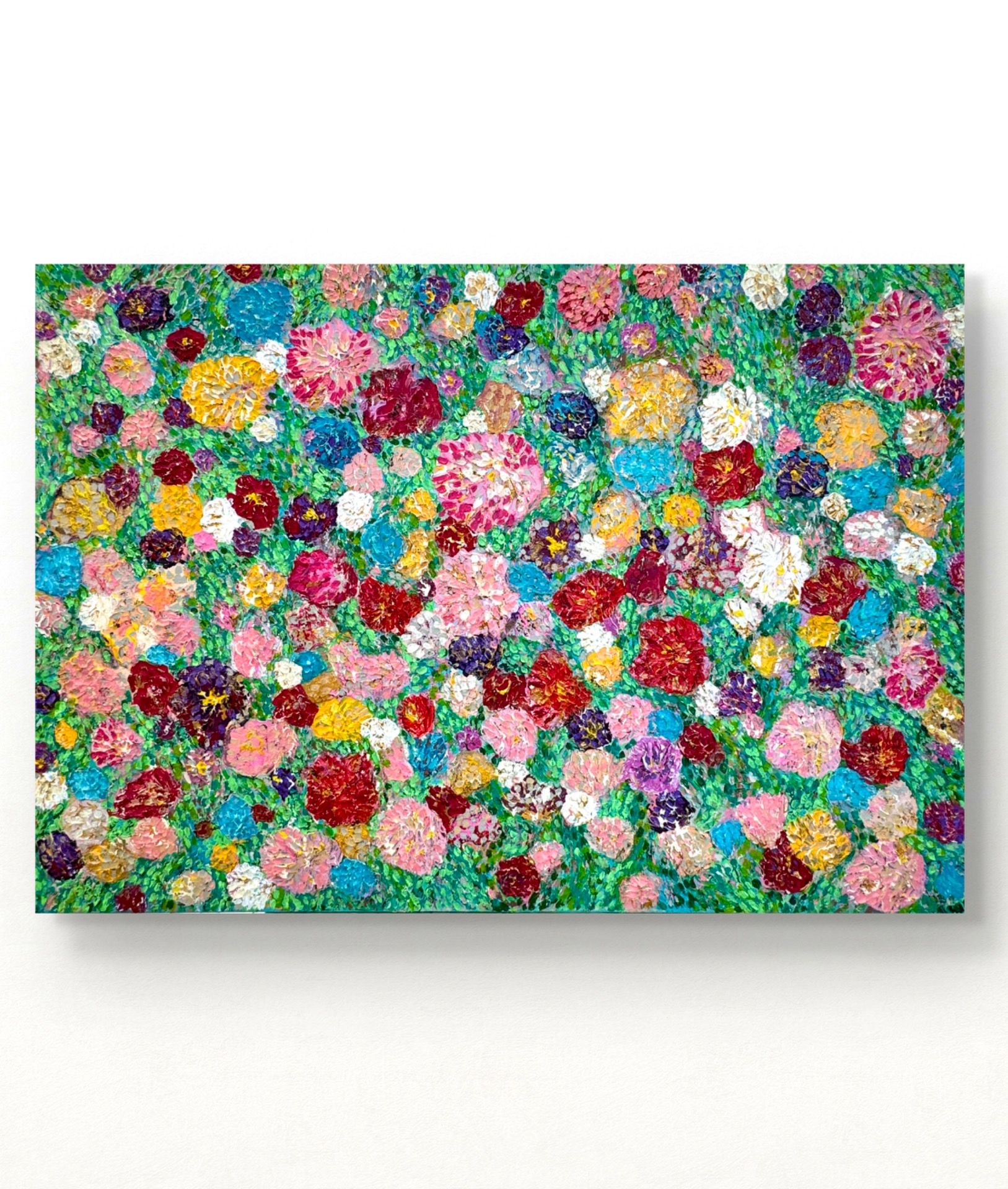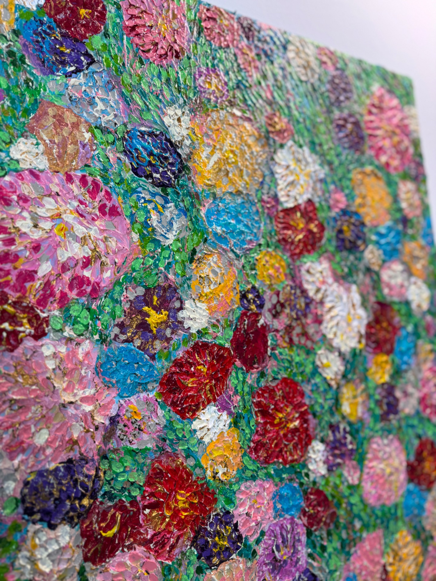 Obraz je tvorený malou špachtľou s použitím mixed media s výrazným reliéfom v pastelových farbách. Použité sú akrylové farby s rôznymi pastami.
